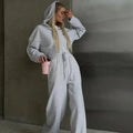 - Design: Relaxed Fit with Hooded Zip Sweatshirt and Wide-Leg Trousers