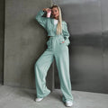 Women’s Two-Piece Lounge Set – Hooded Zip Sweatshirt – Wide-Leg Trousers – Soft Cotton Blend