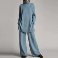 Women’s Two-Piece Loungewear Set – Knit Fabric – Oversized Turtleneck Top – Wide-Leg Pants