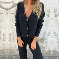 Unwind in style with the Women’s Loungewear Set – Knit Fabric – Relaxed Fit – Button Front – Drawstring Waist from Elegance-Urban. This cozy set features a button-front top and drawstring waist pants, perfect for relaxing at home or casual outings. Enjoy ultimate comfort and effortless style with this matching loungewear set.