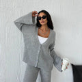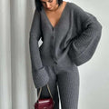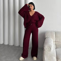 Women’s Two-Piece Loungewear Set – Knitted Ribbed – Oversized Top – Deep V-Neck – Wide Sleeves