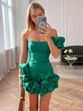 Elegance-Urban presents the Women’s Mini Dress – Satin Finish – Slim Fit – One-Shoulder with Ruffle Hem. This mini dress boasts a sleek, body-hugging silhouette and a luxurious Satin-inspired material blend. Featuring a dramatic one-shoulder design with ruffle detail and a playful ruffle hem, perfect for evening wear and stylish social gatherings.