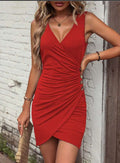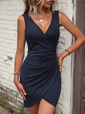 Elegance-Urban's Women’s Mini Dress – Slim Fit Ribbed Fabric – V-Neck – Ruched Side – Sleeveless is your go-to for effortless chic. This slim-fit mini dress features a flattering V-neck, sleeveless, and a stylish ruched side for a figure-enhancing look. Perfect for nights out or summer parties!