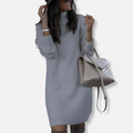 Women’s Mini Dress – Turtleneck – Wool Blend Knit – Ribbed Cuffs – Slim Fit
