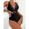 Elegance-Urban Women’s One-Piece Swimsuit – Mesh Paneling – Deep V-Neck – High Leg Cut – Supportive Fit. This sleek swimsuit offers a flattering silhouette with stylish mesh panels, a daring deep V-neck, and a high-leg cut for an elongated look. Perfect for making a statement by the pool or at the beach.