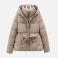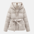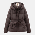 Women’s Padded Coat – Slim Fit Quilted Design – Hooded with Tie Waist – Zipper Closure