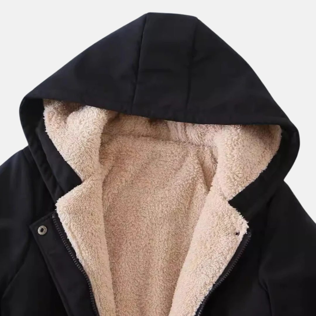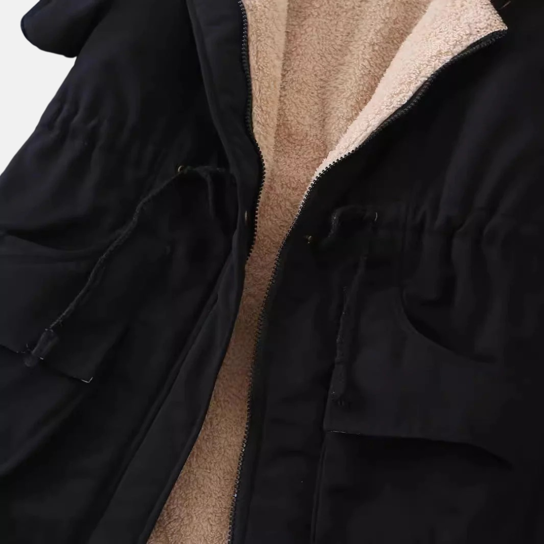 Women’s Parka Jacket – Hooded – Plush Lined – Mid-Thigh – Drawstring Waist – Loose Fit. Stay warm and stylish with this hooded parka. Featuring a plush lining, mid-thigh length, and adjustable drawstring waist, it’s the perfect blend of comfort and practicality for cold weather.
