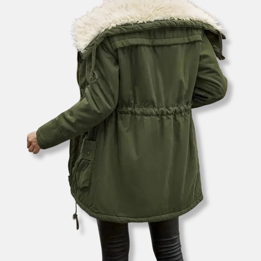 Women’s Parka Jacket – Mid-Length Relaxed Fit – Faux Fur Hood – Utility Pockets – Drawstring Waist