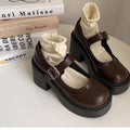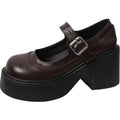 Women’s Platform Shoes – Chunky Block Heel – Faux Leather – Mary Jane Strap – Retro Toe