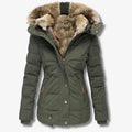Women’s Puffer Jacket – Fitted Silhouette – Faux Fur Hood – Quilted Water-Resistant