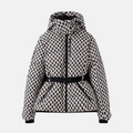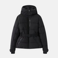 - Design: Quilted, insulated puffer with belted waist