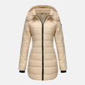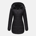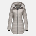 Women’s Puffer Jacket – Quilted Insulated – Detachable Hood – Ribbed Cuffs – Mid-Length Fit