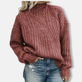 Women’s Pullover Sweater – Wool Cable Knit – High Neck – Relaxed Fit Cozy Knitwear