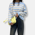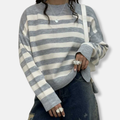 Elegance-Urban's Women’s Pullover Sweatshirt – Loose Fit – Striped Knit – Ribbed Hem and Cuffs combines comfort and style. This crew neck sweatshirt features a relaxed silhouette and bold stripes, making it perfect for everyday wear. The ribbed detailing adds a touch of sophistication.