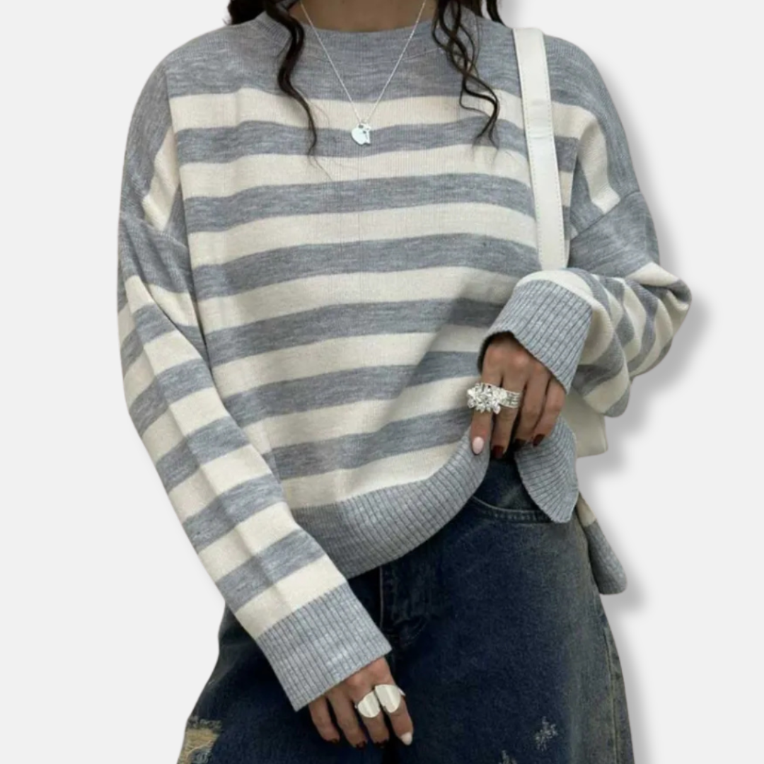 Pair this striped sweatshirt with your favorite jeans for a relaxed weekend outfit, or dress it up with a skirt and boots for a more elevated look.