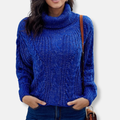 Women’s Pullover Sweatshirt – Oversized Relaxed Fit – Chunky Wool Knit – Ribbed Turtleneck