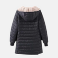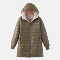 Women’s Quilted Coat – Mid-Length Relaxed Fit – Fleece Hood – Water-Resistant – Zip Front