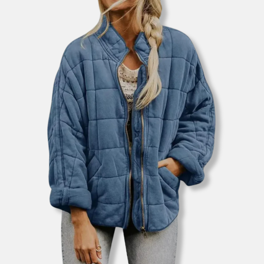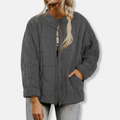 Women’s Quilted Coat – Oversized Fit – Stand-Up Collar – Full-Zip Long Sleeve