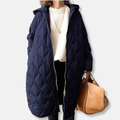 Women’s Quilted Jacket – Oversized Fit – Long Length – Hooded with Zip Front