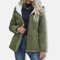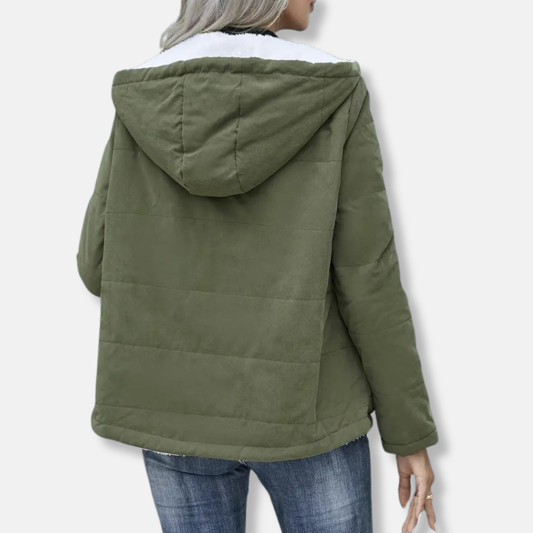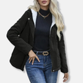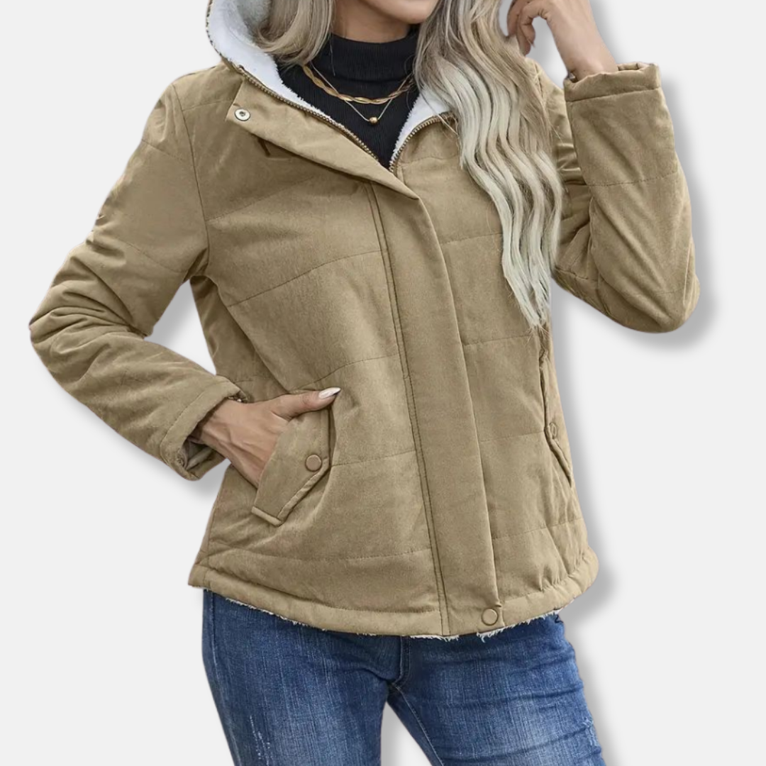 Women’s Short Coat – Quilted Fabric – Fleece Lined Hood – Relaxed Fit – Full Zip
