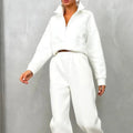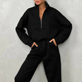 Women’s Two-Piece Sweat Set – Relaxed Fit – High Collar Zip Top – Elastic Waist – Cotton Blend