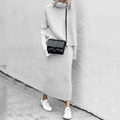 Women’s Two-Piece Sweater and Skirt Set – Ribbed Knit – Turtleneck – Slim Fit Midi Skirt by Elegance-Urban. This matching ribbed knit set offers a chic, coordinated look with a comfortable turtleneck sweater and a flattering slim-fit midi skirt. Perfect for creating an effortlessly stylish outfit.
