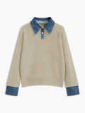 Women’s Sweater – Relaxed Fit Knit – Denim Collar and Cuffs – Layered Look Styling