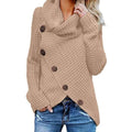Women’s Sweater – Relaxed Fit – Waffle Knit – Cowl Neck – Button Front – Hip Length
