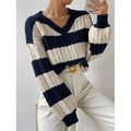Women’s Sweatshirt – Oversized Fit – Wool Blend Cable Knit – V-Neck Striped Pullover