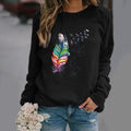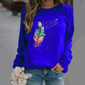 Women’s Sweatshirt – Relaxed Fit – Feather Print – Cotton Feel – Crew Neck – Long Sleeve