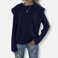 Women’s Sweatshirt – Relaxed Fit – Padded Shoulders – Crew Neck – Long Sleeve Cotton