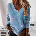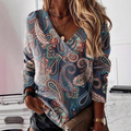 Women’s Sweatshirt – V-Neck – Loose Fit – Cotton Blend – Paisley Print – Long Sleeve