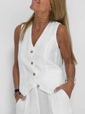 Layer it over a blouse for a professional look, or wear it alone for a minimalist chic vibe. Pair with matching linen pants for a coordinated ensemble.