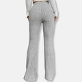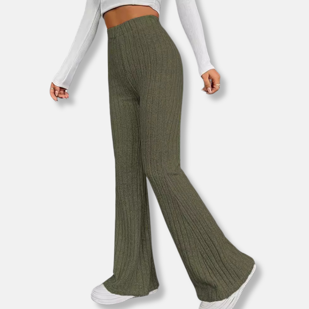 Women’s Trousers – Slim Fit – High Waist – Ribbed Knit Stretch – Flared Leg – Full Length