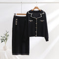 Style this set together for a polished look, or wear the pieces separately. The cardigan can be paired with jeans, and the skirt can be styled with a blouse for versatile outfits.