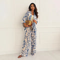 - Design: Floral Print, Kimono Top with Wide-Leg Trousers