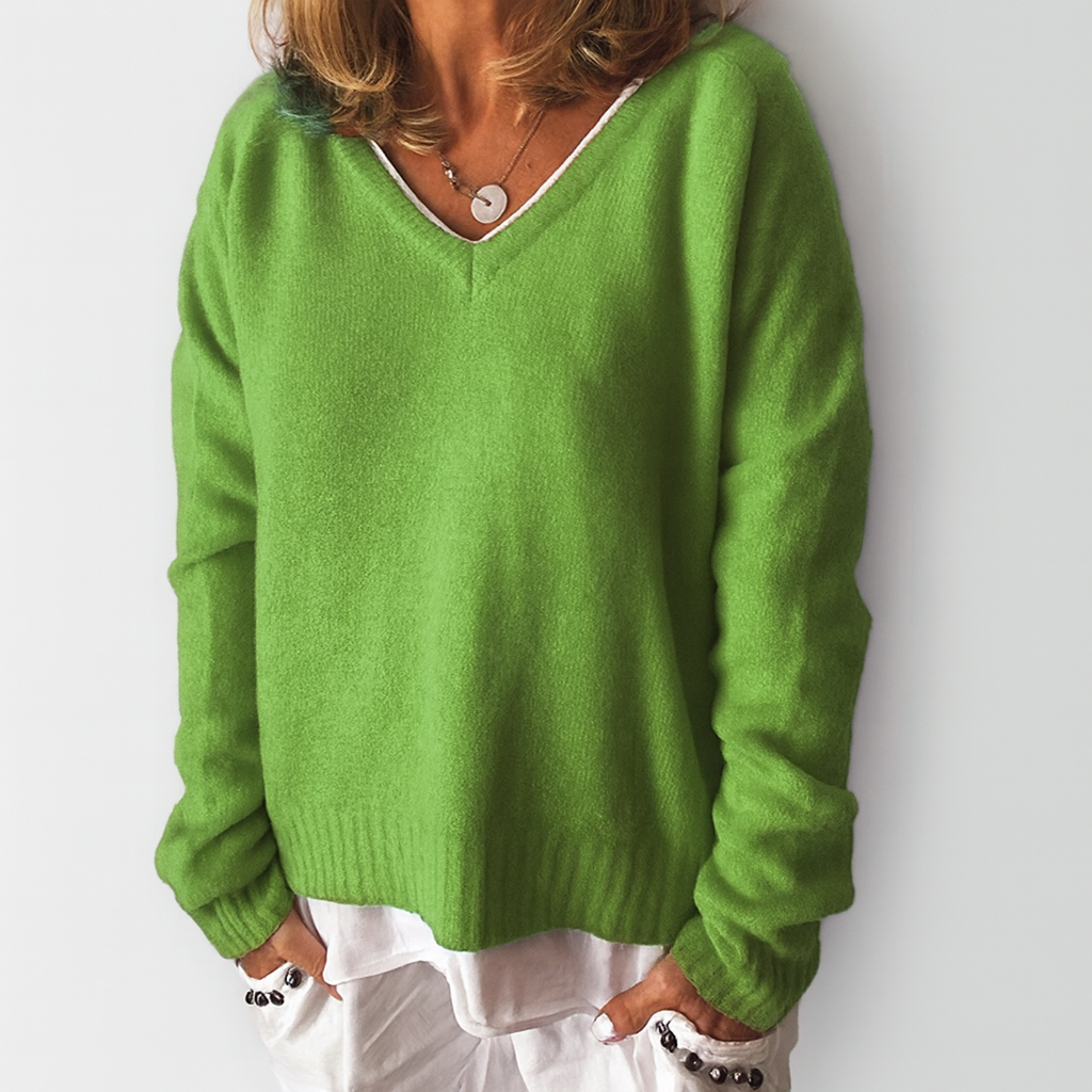Women’s V-Neck Sweater – Soft Knit – Relaxed Fit – Ribbed Trim – Long Sleeve Casual