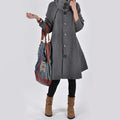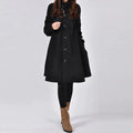 Women’s Wool Coat – A-Line Fit – High Ribbed Collar – Button Front – Knee Length