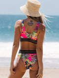 Flaunt your figure with the Women's Bikini Set - High Waist - V-Neck Cutout - Floral Print - Supportive Straps by Elegance-Urban. This stylish floral print bikini features a flattering high-waist bottom and a V-neck top with chic cutouts and supportive straps. Perfect for the beach or pool, this set blends comfort and on-trend style.