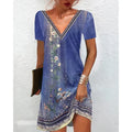 Embrace effortless style with the Women's Bohemian Dress - V-Neck - Short Sleeve - Lightweight Floral Print Casual Wear by Elegance-Urban. This chic dress features a flattering V-neck and short sleeves, perfect for warm weather. Its lightweight fabric and beautiful floral print make it ideal for casual outings.
