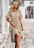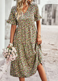 Embrace effortless style with our Women's Floral Dress - V-Neck - Short Sleeve - Lightweight Casual Fit from Elegance-Urban. This floral V-neck dress features a flattering silhouette and breathable fabric, perfect for everyday elegance and casual outings. Its lightweight design and short sleeves make it ideal for warm weather.
