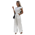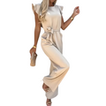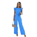 Elegance-Urban presents the Women's Jumpsuit - Sleeveless Ruffle Shoulder - Belted Waist - Wide-Leg Elegant Fit. This chic jumpsuit features a flattering belted waist, stylish ruffle shoulder detail, and a comfortable wide-leg design. Perfect for effortless elegance at any event.