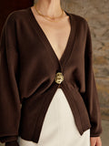 Elevate your wardrobe with our Women's Knit Cardigan - Soft Fabric - V-Neck - Long Sleeve - Golden Button Closure by Elegance-Urban. This versatile cardigan features a soft knit, a flattering V-neck, and a chic golden button, making it perfect for layering and adding a touch of elegance to any outfit. A classic and minimalist design with long sleeves.