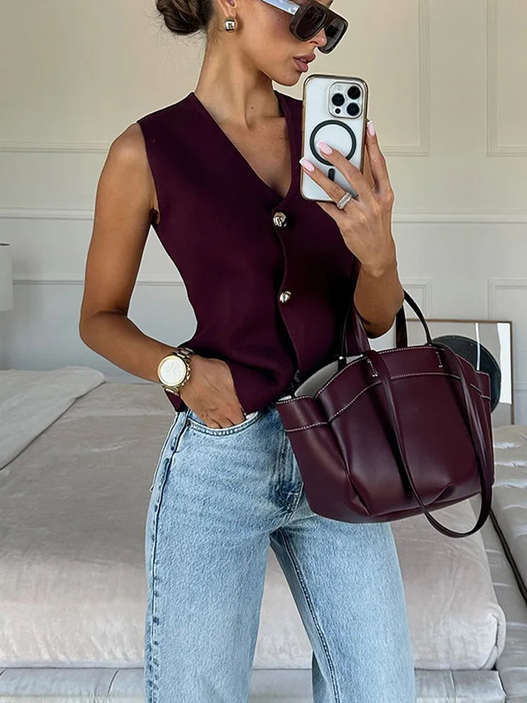 Elevate Your Look with the Women's Knitted V-Neck Vest
