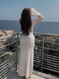 Sheer Knit Open Back Long Dress