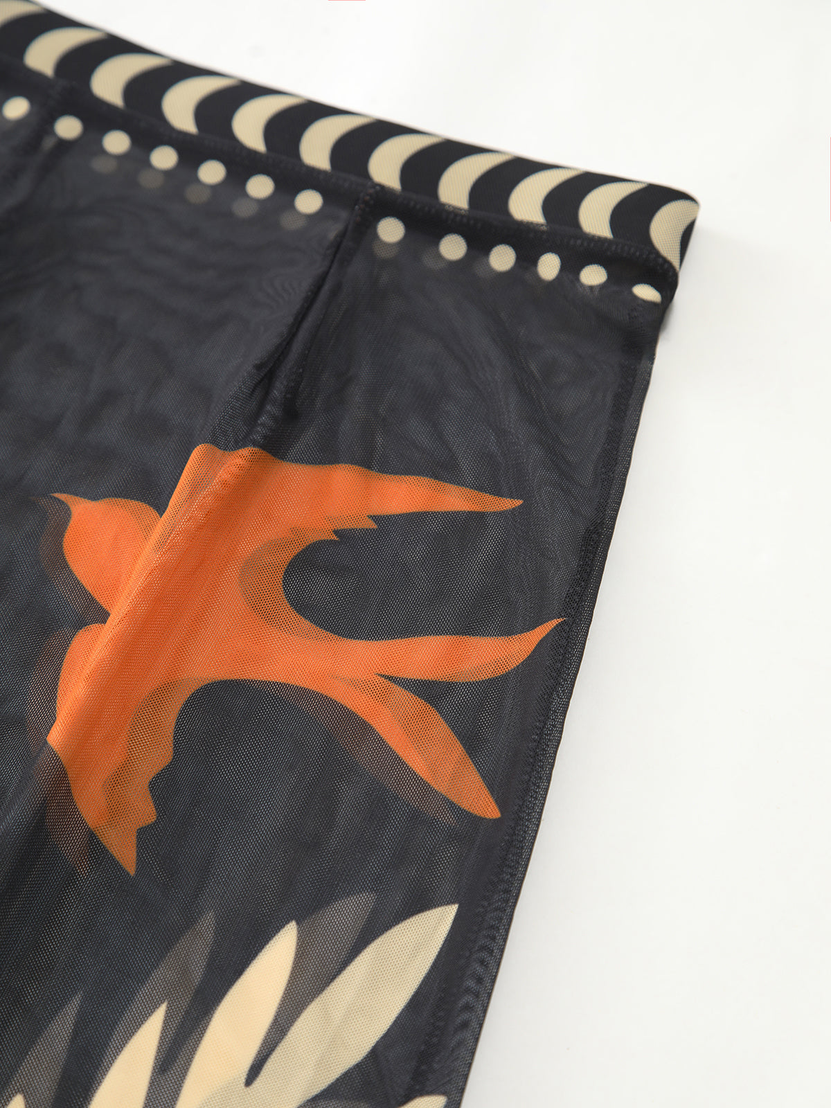 Elegance-Urban presents the Women's Maxi Skirt - Sheer Mesh Cover-Up - Bird Print Flowy Wrap Design! This stylish cover-up boasts a breezy, lightweight feel, perfect for layering. Featuring a unique bird print and flowy silhouette, this maxi skirt elevates your beach or poolside look with ease and elegance.