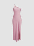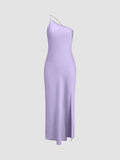 - Design: One-Shoulder, Open Back, High Slit, Maxi Length