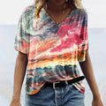 Embrace effortless style with the Women's T-Shirt - Boho Style - V-Neck - Loose Fit - Short Sleeve Casual Wear by Elegance-Urban. This V-neck tee features a relaxed, loose fit and short sleeves, perfect for a breezy, bohemian look. Ideal casual wear for everyday comfort and style, perfect for various casual occasions.