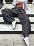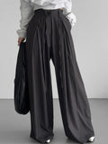 Effortlessly chic Women's Wide-Leg Trousers - High Waist - Pinstripe Draped Suit Pants - Relaxed Fit. These sophisticated, high-waisted trousers feature a timeless pinstripe design and a comfortable, relaxed fit. Perfect for creating an elongated silhouette, they offer both style and ease, ideal for office or smart casual wear.